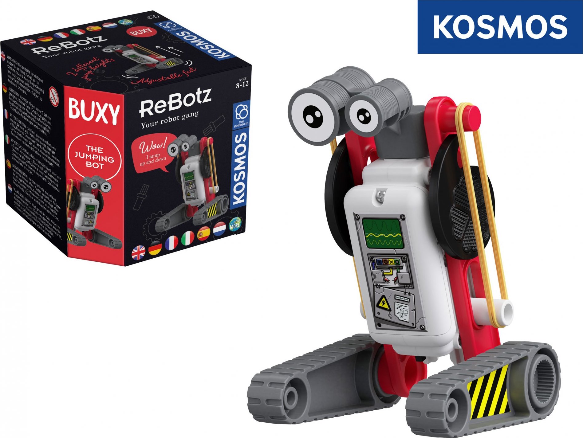 KOSMOS Robot Buxy skákací. 3xAAA baterie nejsou součástí. Obsahuje dílky ke složení robota, nálepky. Doporučený věk 8-12 let. Český návod ke stáhnutí v digitální podobě-QR kód na krabici a v návodu.