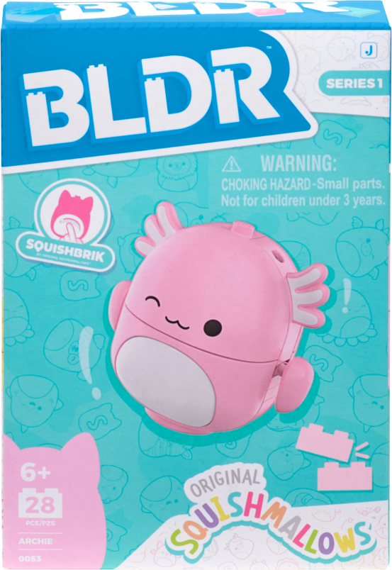 Tato BLDR sada obsahuje 28 dílků pro stavbu oblíbené postavičky Squishmallows – axolotla Archieho.