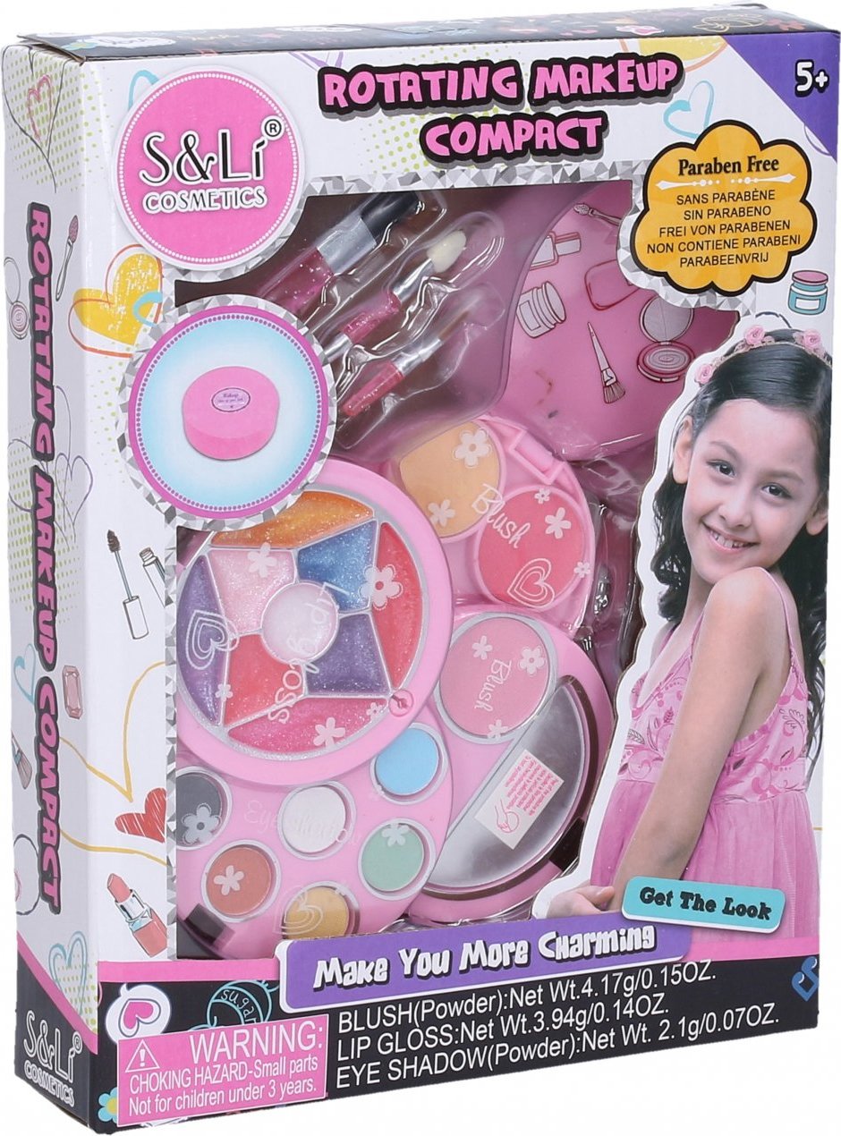 Kosmetický set patrový. Set obsahuje oční stíny, lesk na rty, tvářenku, aplikátory, zrcátko.