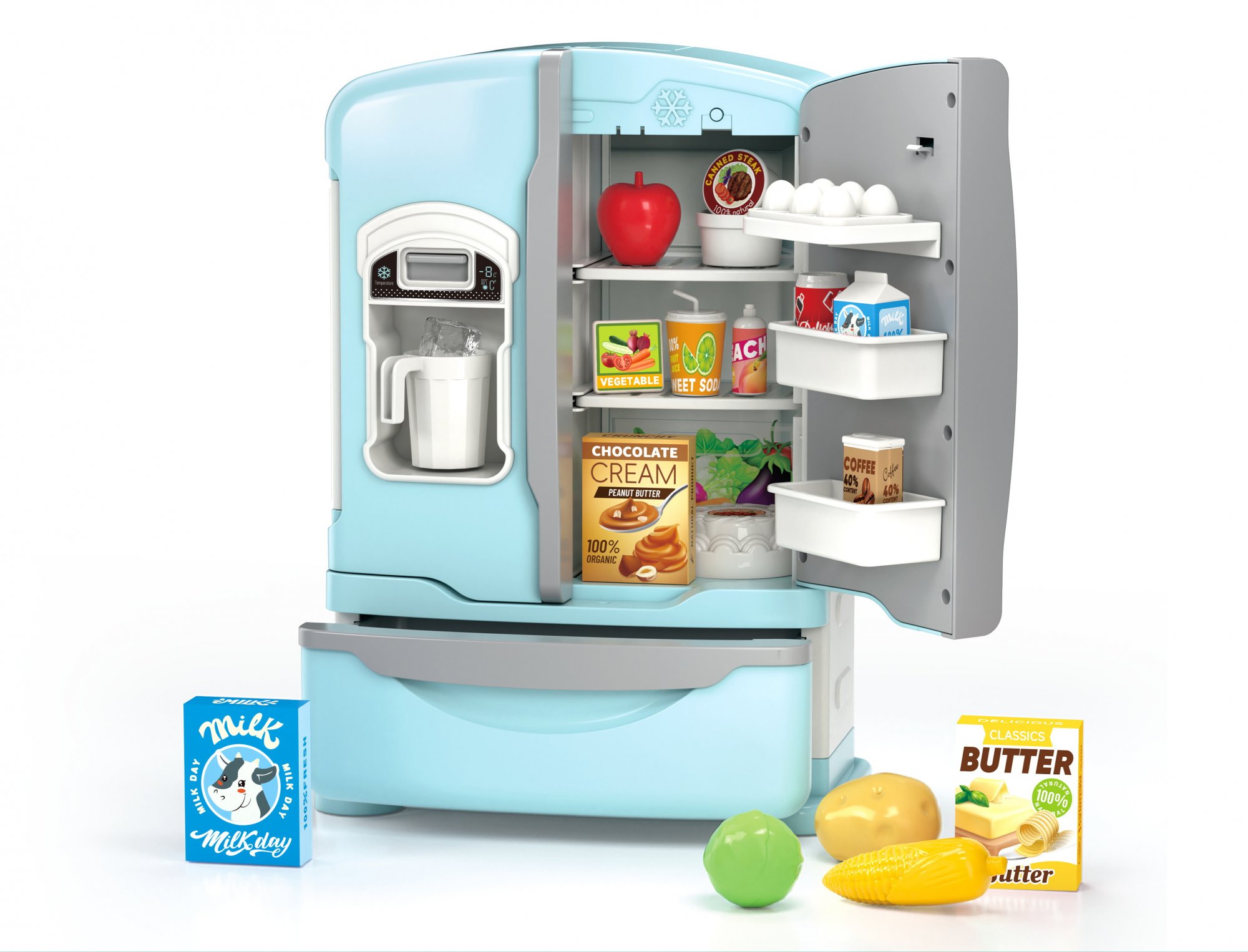 Lednička s efekty. rozměry 19x10x26.5cm. baterie 3xAAA nejsou součástí. Světelné a zvukové efekty. on/off přepínač. nahoře otvor k nalití vody. Po otevření dělá mlhu.