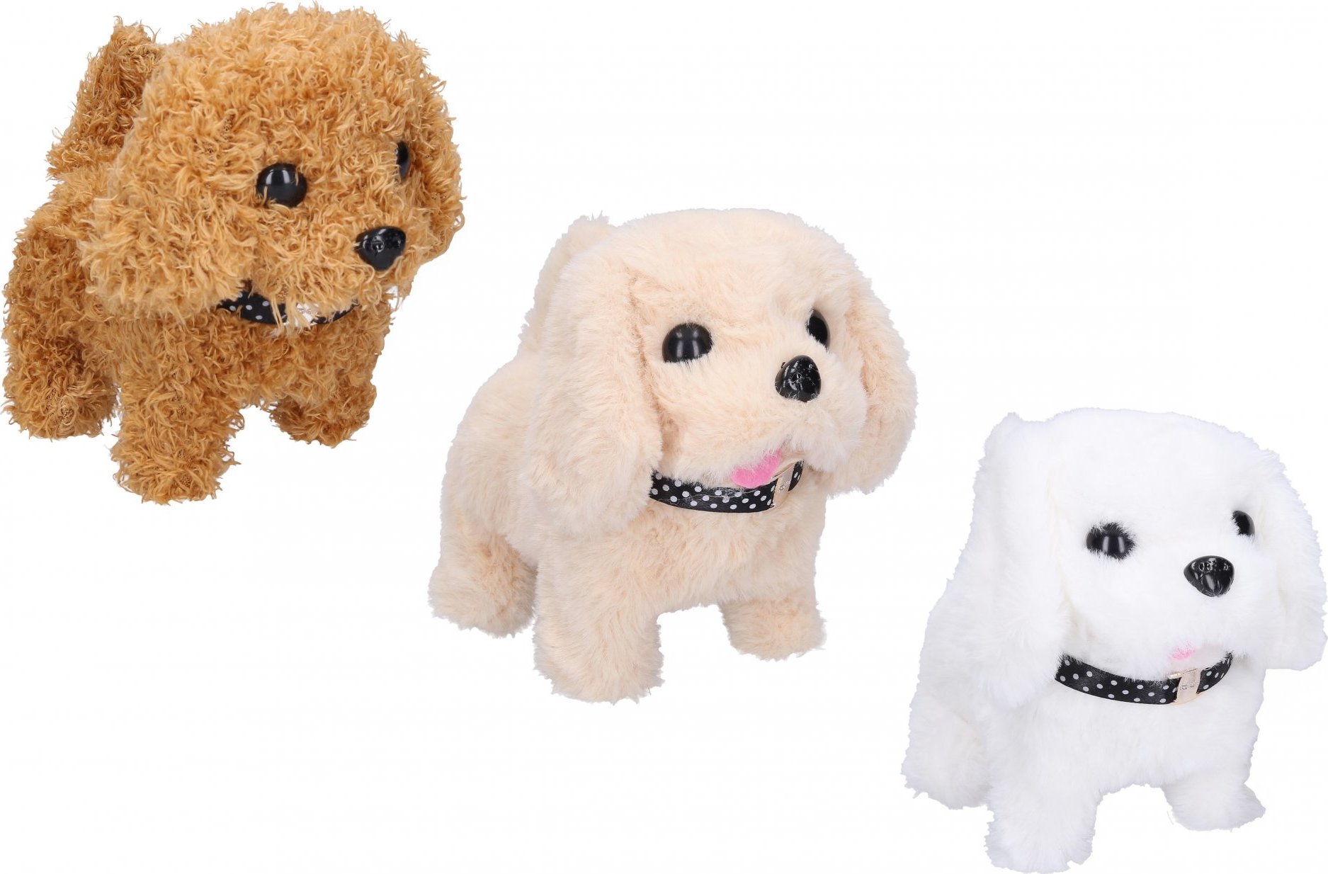 Pes chodící se zvukovými efekty. Rozměry 16x9x12 cm. Display box – 8 ks. Chodí, hýbá ocasem a mňouká. ON/OFF přepínač na spodní straně. 2xAA baterie nejsou součástí.