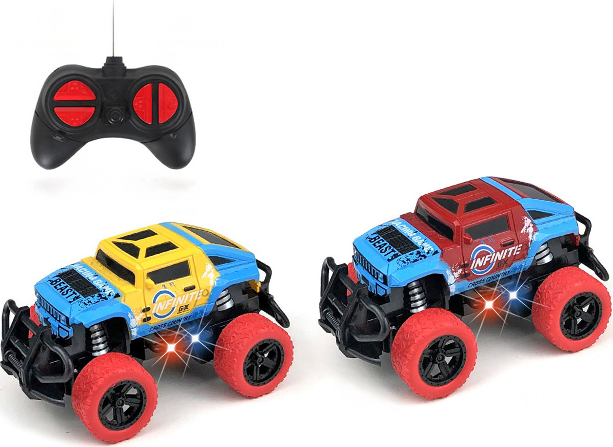 Auto Beast RC na dálkové ovládání. Rozměry 14,5x9x8 cm. Frekvence 27MHz. Světelné efekty. 2xAA baterie do auta a 2xAA baterie do ovladače nejsou součástí balení. Přepínač ON/OFF na spodní straně auta. 3 barevné varianty – modro žluté, modro červené. červené.