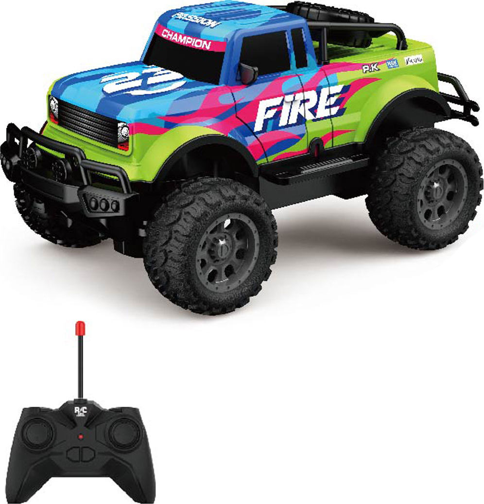 Auto Fire svítící RC na dálkové ovládání. Rozměry 23x14x11 cm. Frekvence 27MHz. Světelné efekty povrchu auta. 4xAA baterie do auta, 2xAA do ovladače nejsou součástí. Try Me tlačítko pro světelné efekty v obalu – 3xAG13 baterie (neměnitelné) součástí. Při vybalování nutno odpojit Try Me kabel z auta. Rychlost 10 km/h. Dosah až 20 m. Přepínač ON/OFF na spodní straně auta.