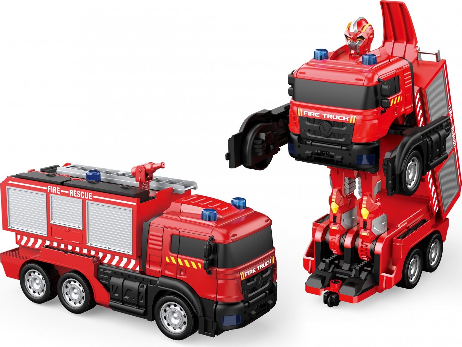 Autorobot RC na dálkové ovládání. Transformace na hasičské auto. Velikost 26 cm. Vodní dělo, aktivace stlačením majáku, nádržka na vodu v zadní části střechy. pohyb do všech směrů, transformace tlačítkem. Frekvence 40 MHz. Robot – 1×3.7V bateriový pack (součástí), ovladač – 2xAA (není součástí). USB nabíjecí kabel v balení.