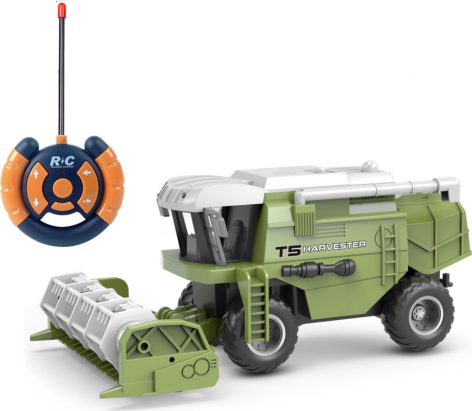 Kombajn RC na dálkové ovládání. Velikost 24 cm. Frekvence 27 nebo 40MHz. Bateriový pack 3.7V do kombajnu součástí, 2xAA do ovladače nejsou součástí. USB kabel součástí. Přepínač ON/OFF na spodní straně traktoru.