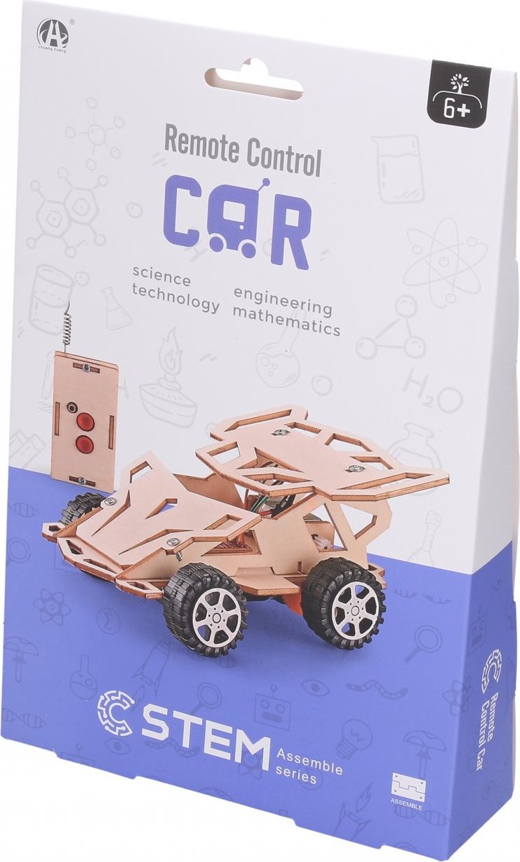 Stavebnice auto RC na dálkové ovládání. 2xAA baterie do auta, 2xAA baterie do ovladače nejsou součástí.