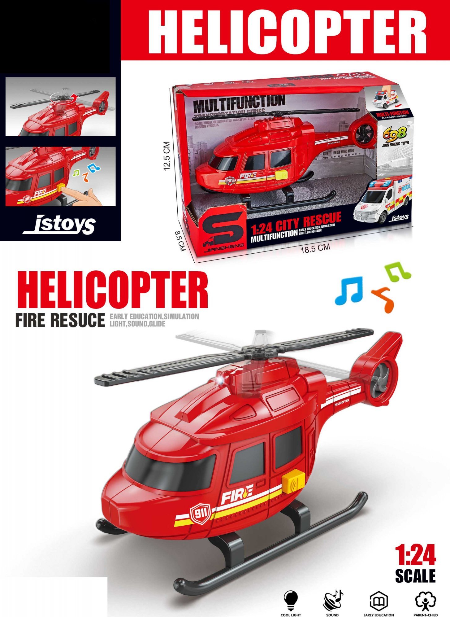Vrtulník s efekty. Světelné a zvukové efekty tlačítkem na levé straně vrtulníku. 3xAG13 baterie součástí.