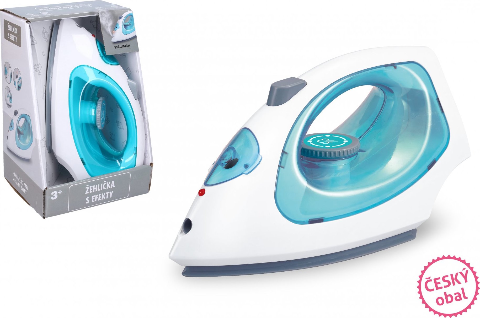 Žehlička s efekty. Velikost 22 cm. Světelné a zvukové efekty. 3xAA baterie nejsou součástí. Lze naplnit vodou, upouští páru po stlačení tlačítka.